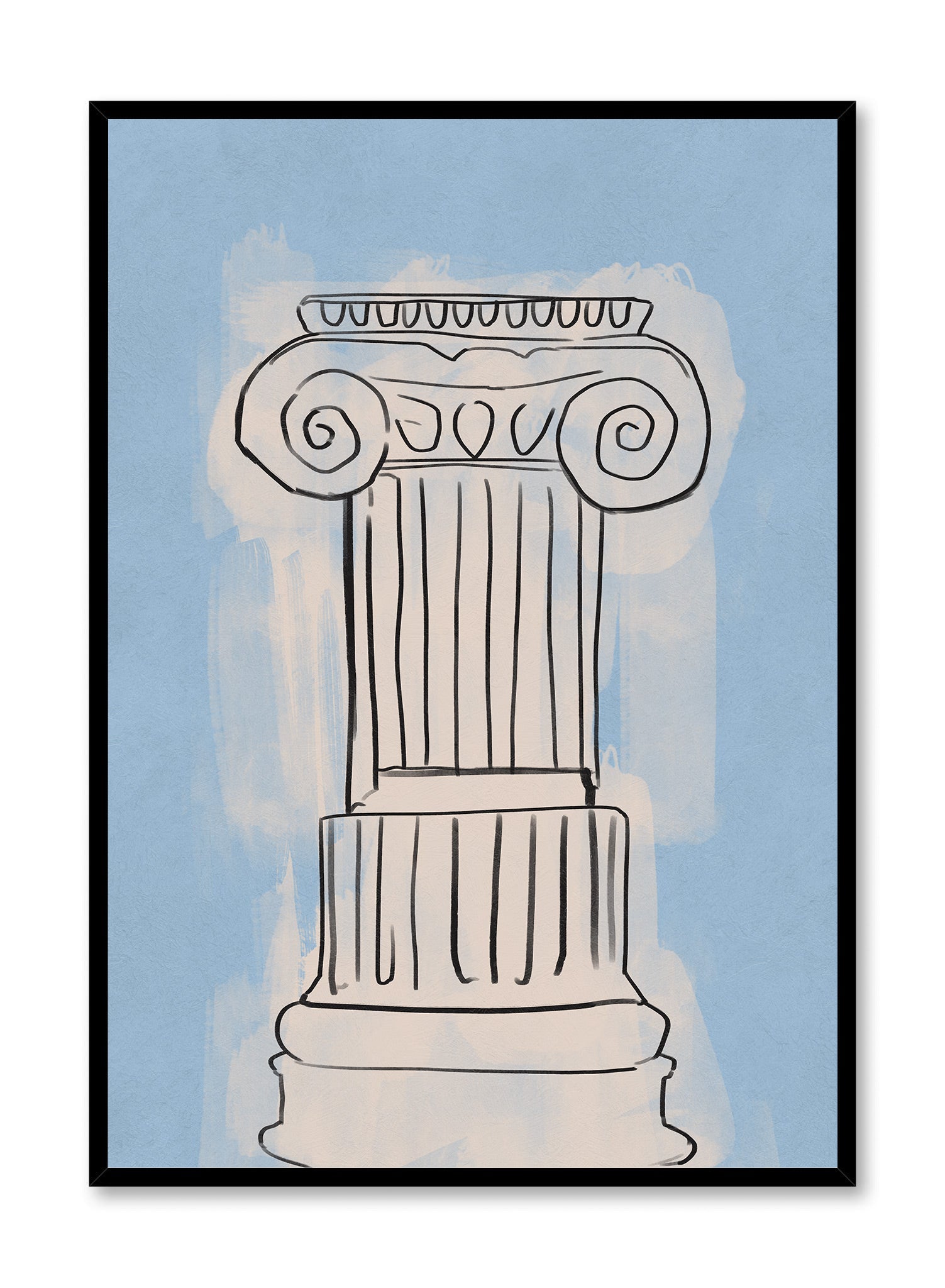 A classic Ionic column is reimagined in this minimalist sketch, celebrating the elegance and enduring influence of ancient architecture. The artwork focuses on the column’s distinctive scrolled capital, drawn with clean, confident black lines that capture its essential form. The piece feels like a modern study of a historical subject, blending classical inspiration with a contemporary, pared-back aesthetic.